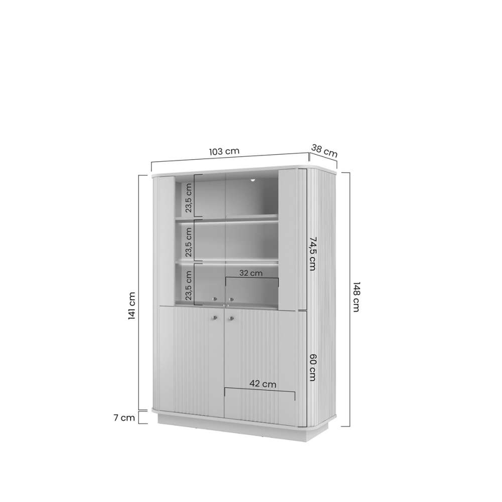Vitrineskap VESPER - 4 dører, avrundede kanter, riflede fronter