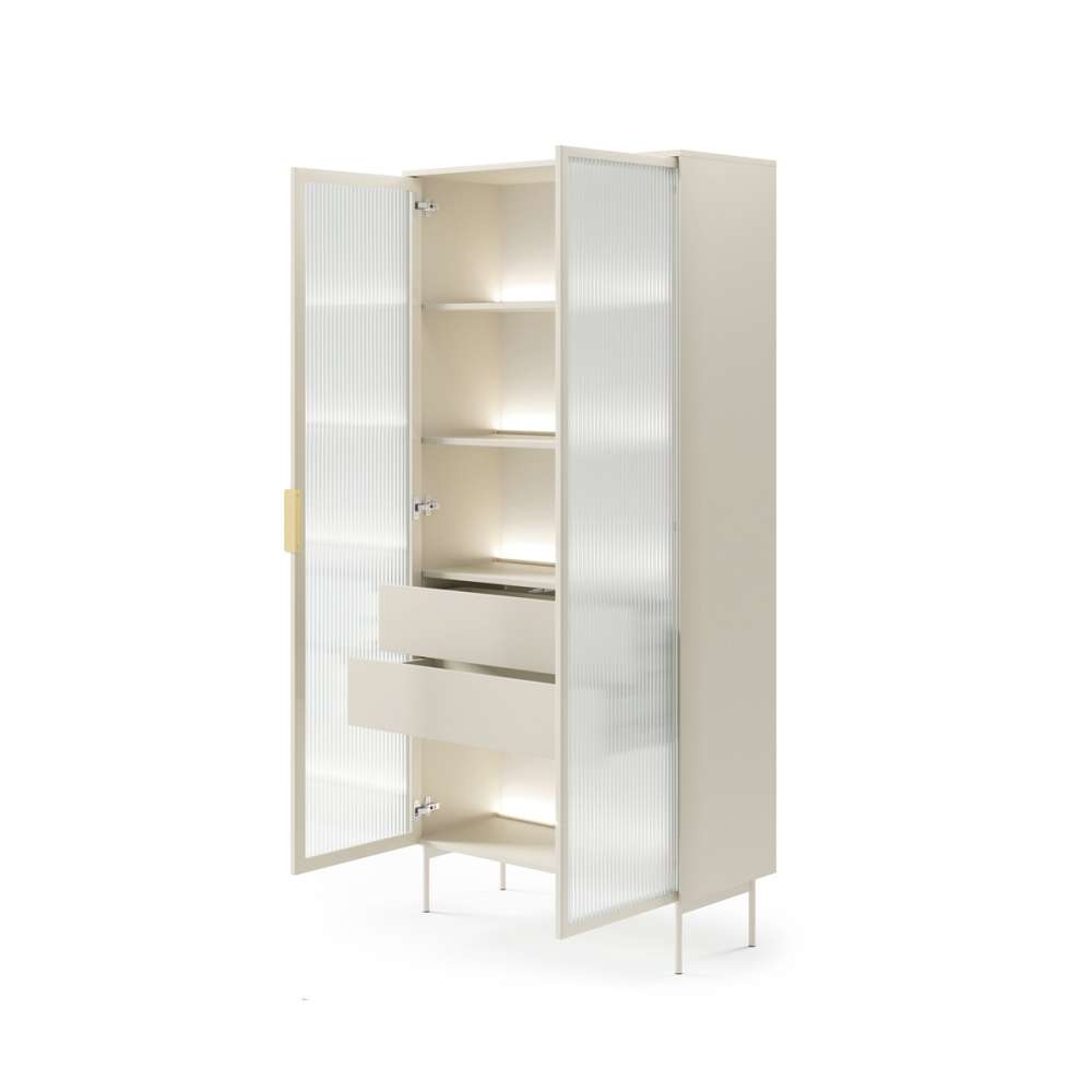 Vitrineskap LUMI - cashmere - høye ben - med belysning