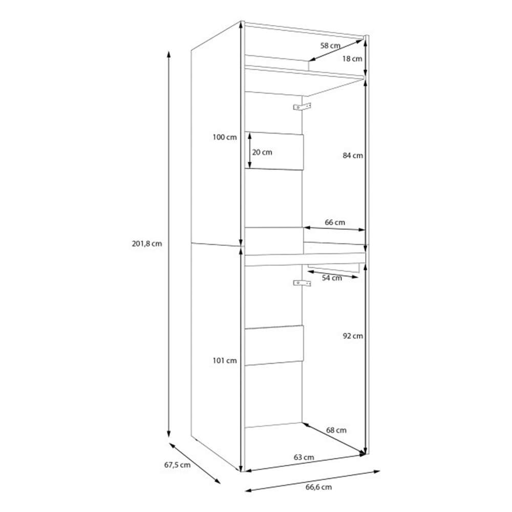 Skap over vaskemaskin/tørketrommel - B:67 cm H:202 D:67 cm